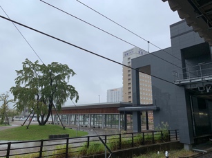 新潟観光をする妻と別れ、一人上越妙高駅前を出発する朝は予定外の土砂降りです。