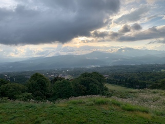 朝食ビュッフェ前、朝日に誘われ風にたなびくすすきの穂に秋を感じお庭を散策し、妙高山と眼下の景色に癒され、新鮮な空気を深呼吸すると身も心も洗われる気分に浸りました。