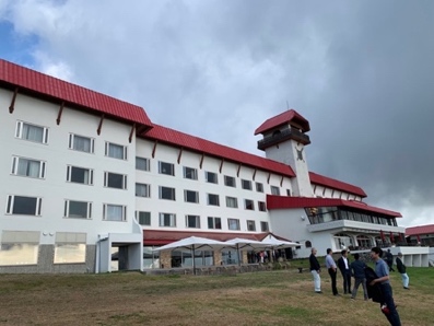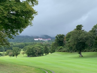 本隊の東京チームと妙高高原駅で合流、送迎車で雨の赤倉ゴルフコース倶楽部ハウスに到着しました。