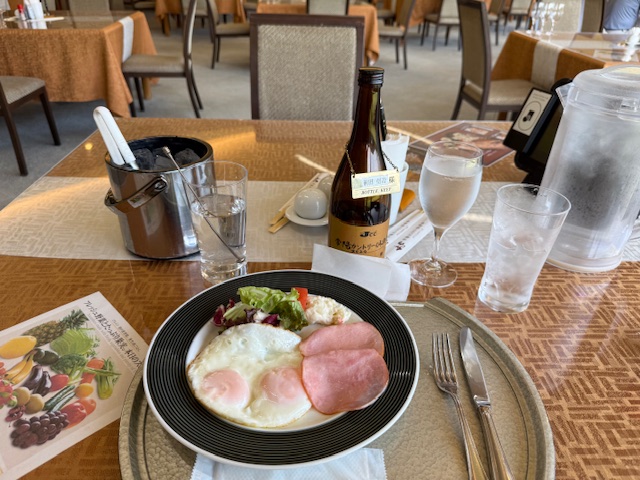 着替えてレストランへ。同伴者の皆様は練習へ。私はいつものようにハムエッグを食しながら、独りミーティングです。ご機嫌です。