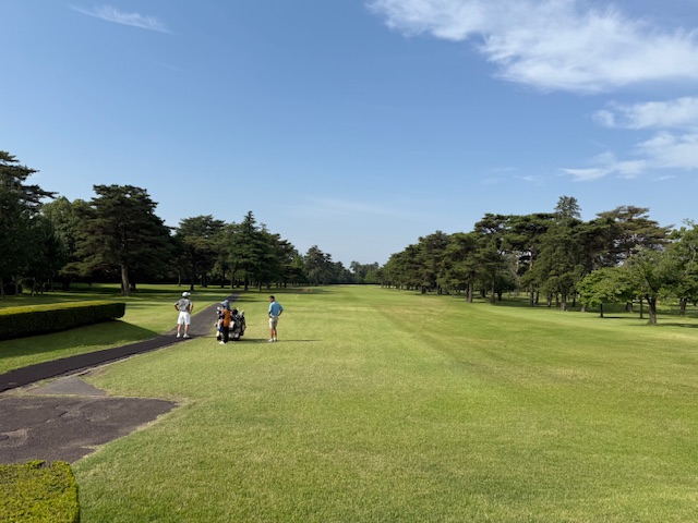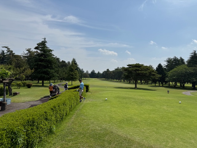 時間になり、アウトへ。今日のティは青。グリーンはベントです。タケさんにはハーフ2枚もらい、マッチに挑みます。キャディさんのお名前を聞いて、私、同じ名字で親子でキャディしている人知ってます~!って言うと、それは母と姉です!だって。なんと!母と娘2名がキャディさんですか!素晴らしいキャディ一家!