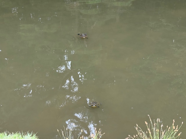5番ショートは、7アイアンで打つも竜巻球で池に入る。ドロップしての3打目もまたまた池へ。ドロップしての5打目がショート。6オン。なんと8を打つ。バーカである。