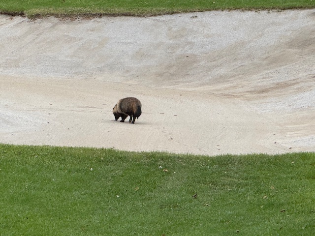 17番546yロングは、ドライバーは左ラフへ。uでフェアウェイへ。3w、52度で4オン。ここからまたまた3パンチで7を打つ。パターが下手過ぎる。