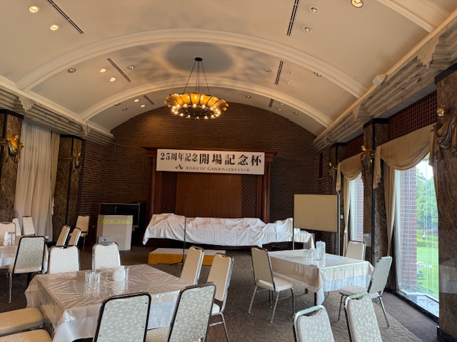 金曜日にロータリアンの縁のM.Fさんから「信吾さん、アスレチックの明日明後日の開場記念杯には出るの?」と尋ねられ。いや。と話たら、記念の25周年らしいよと聞き、翌日の土曜日に日曜の開場記念杯に申し込み7時58分スタートをいただき、やって来ました。1年半ぶりかな~。にもかかわらずレストランには私のボトルが残っていました。