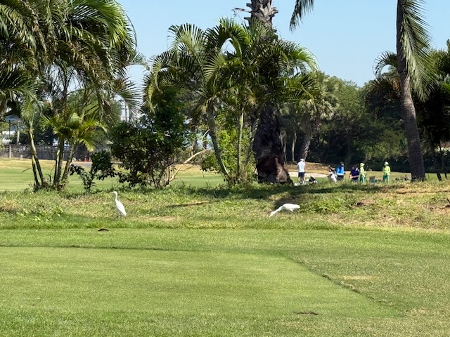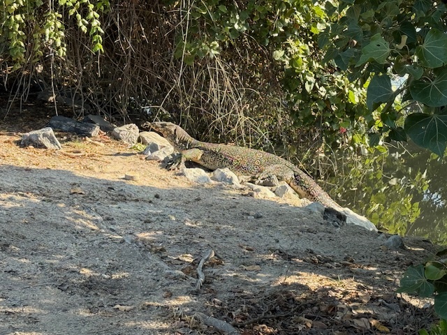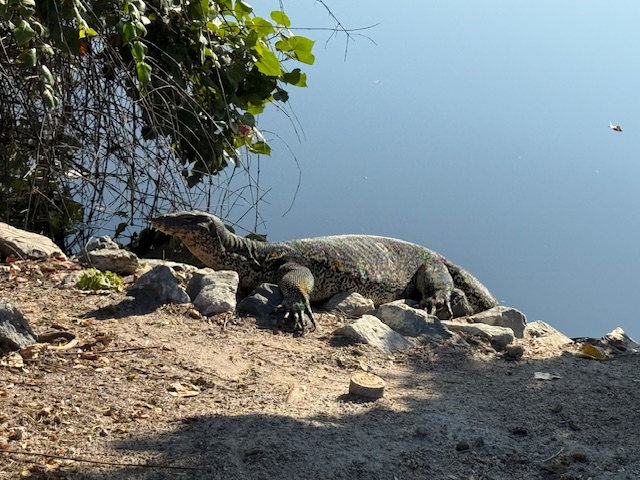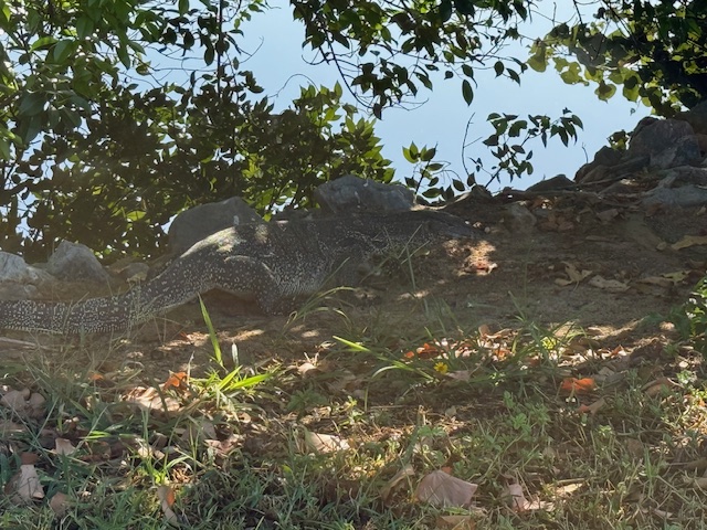 2番560yロングは、ドライバー、3w、6アイアンでバンカーイン。も、ナイスアウトとナイスパターで鉄砂ベスト。オオトカゲに遭遇。記念にパチリ!