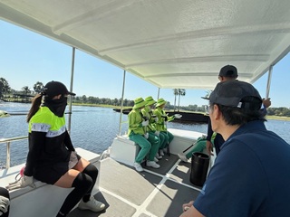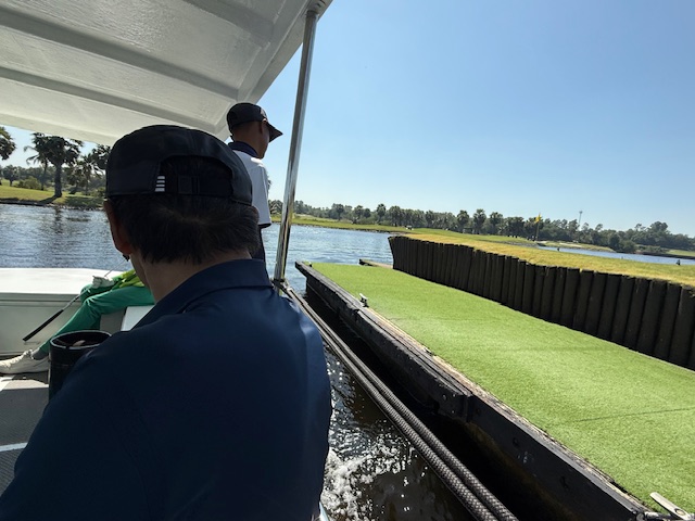 17番名物145yショートは、8アイアンで打つも当たり薄くお池にジャブン。船頭さんのお船でグリーンへ。前進3打目からチョンボ。ダボとする。ナイス1オンからN.Kさんが無難にパーでニアニアベスト獲得。