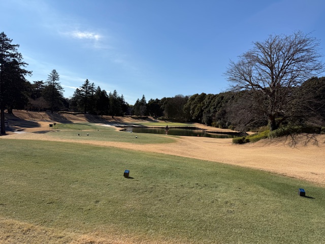 13番右ドッグのロングは、ドライバー、セカンドをuでスライスの予定が掛からず。3打目がカーン。6オンの7を打つ。しっかり3オンのT.KさんとK.Sさんが無難にパー。