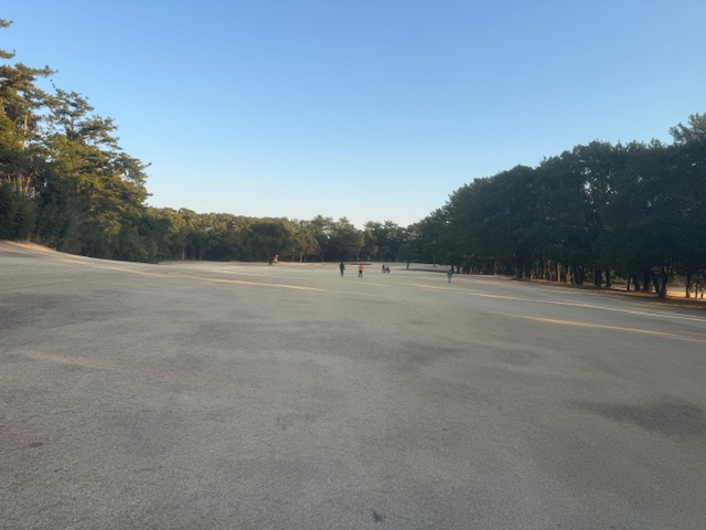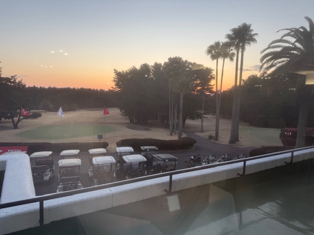 その後、パターを転がして、アウトから。今日もティは後ろから。