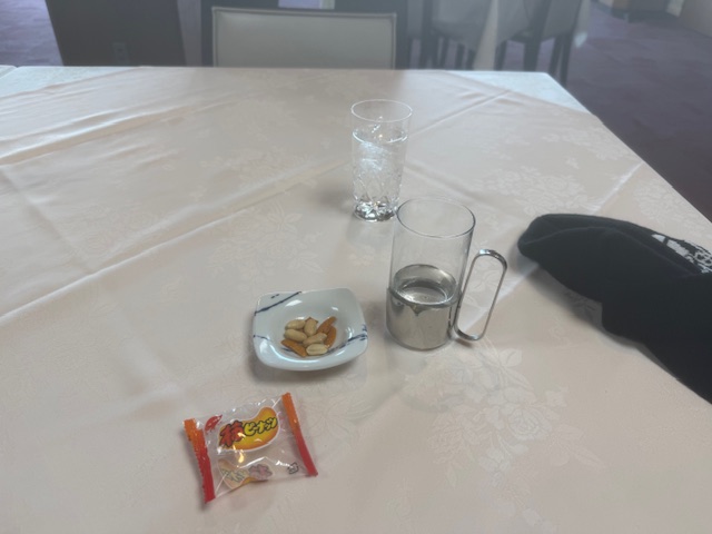 レストランで軽く独りミーティングし、軽くパターを転がして、アウトから。