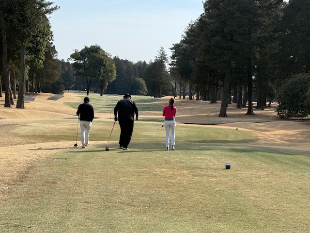 3番これまた長いミドルは、ドライバーは木に当たり全然飛ばず。3w、5wで乗らず。やっとのボギー。この難ホールを完璧2オンからS.Kさんがパー。