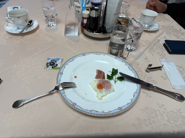まずは、レストランで朝食を頂きながら、ミーティング後、合羽を着て、インから。相談し、白ティで行きましょうとなる。グリーンは高麗です。