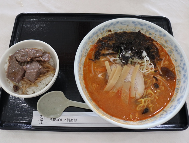 プレー後、もう一つの楽しみ 由仁ラーメンとミニジンギスカン丼(1200円)を食べました。